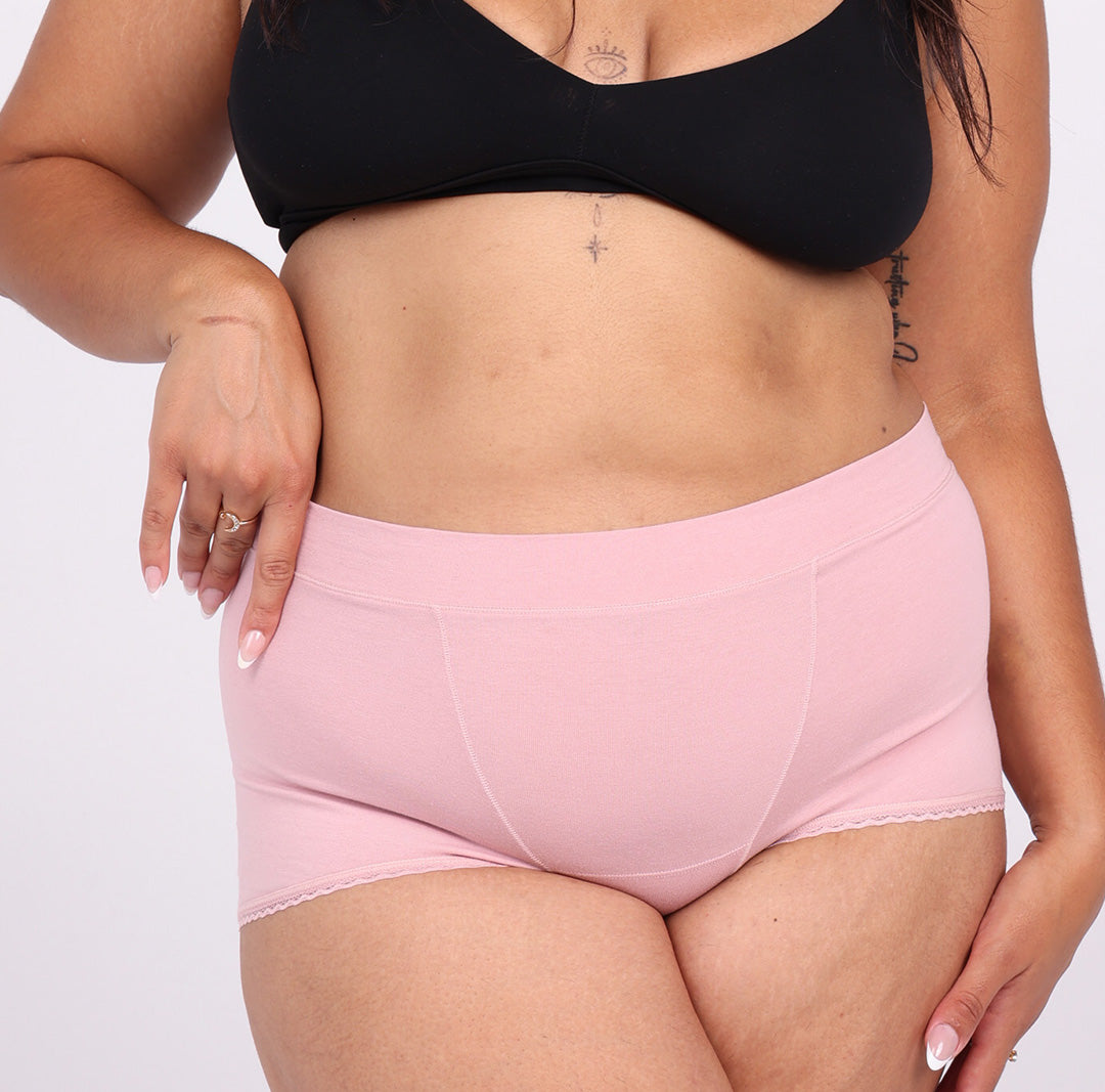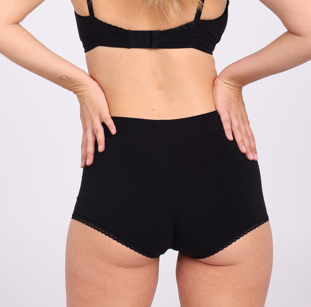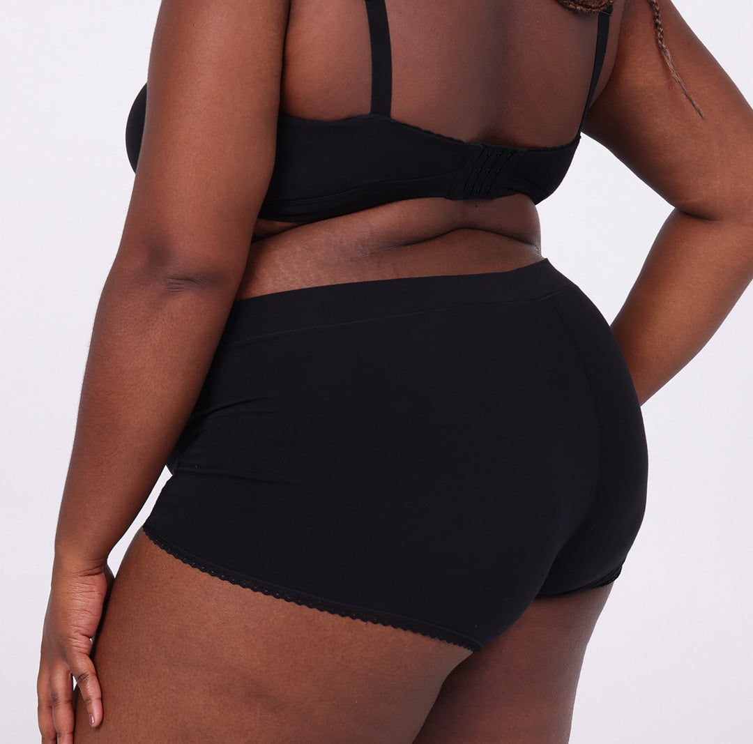 A high-rise, full-coverage boyshort is made of our soft GOTS-certified organic cotton fabric, detailed with lace trim, and features our signature sewn-down gusset. Designed for maximum comfort with no side seams – making it the perfect option for a smooth look under any outfit or to sleep in.