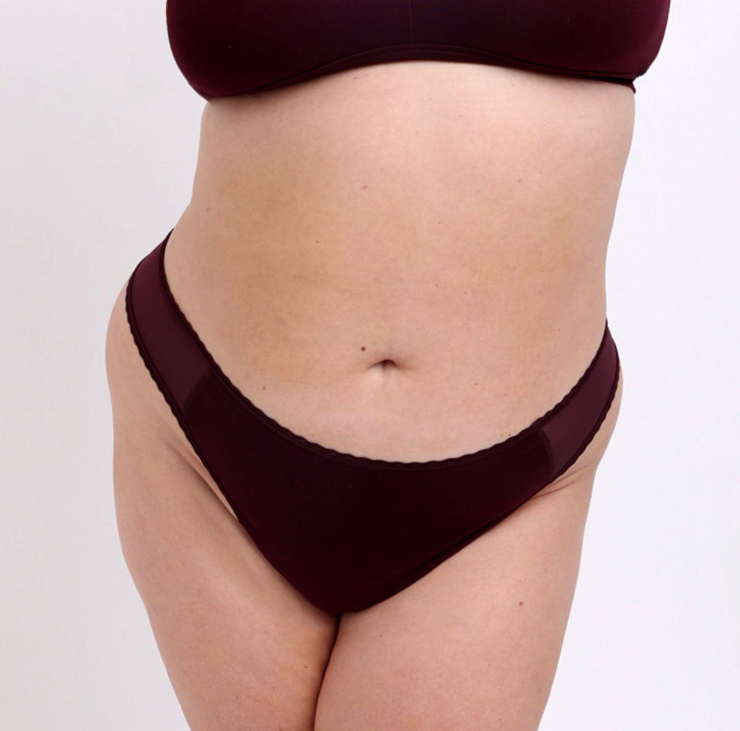 The mid-rise thong is the perfect foundation for any outfit. Designed with a high leg cut that sits right on your high hip. Made with our soft GOTS-certified organic cotton fabric, detailed with lace trim, and featuring our signature sewn-down longer gusset.