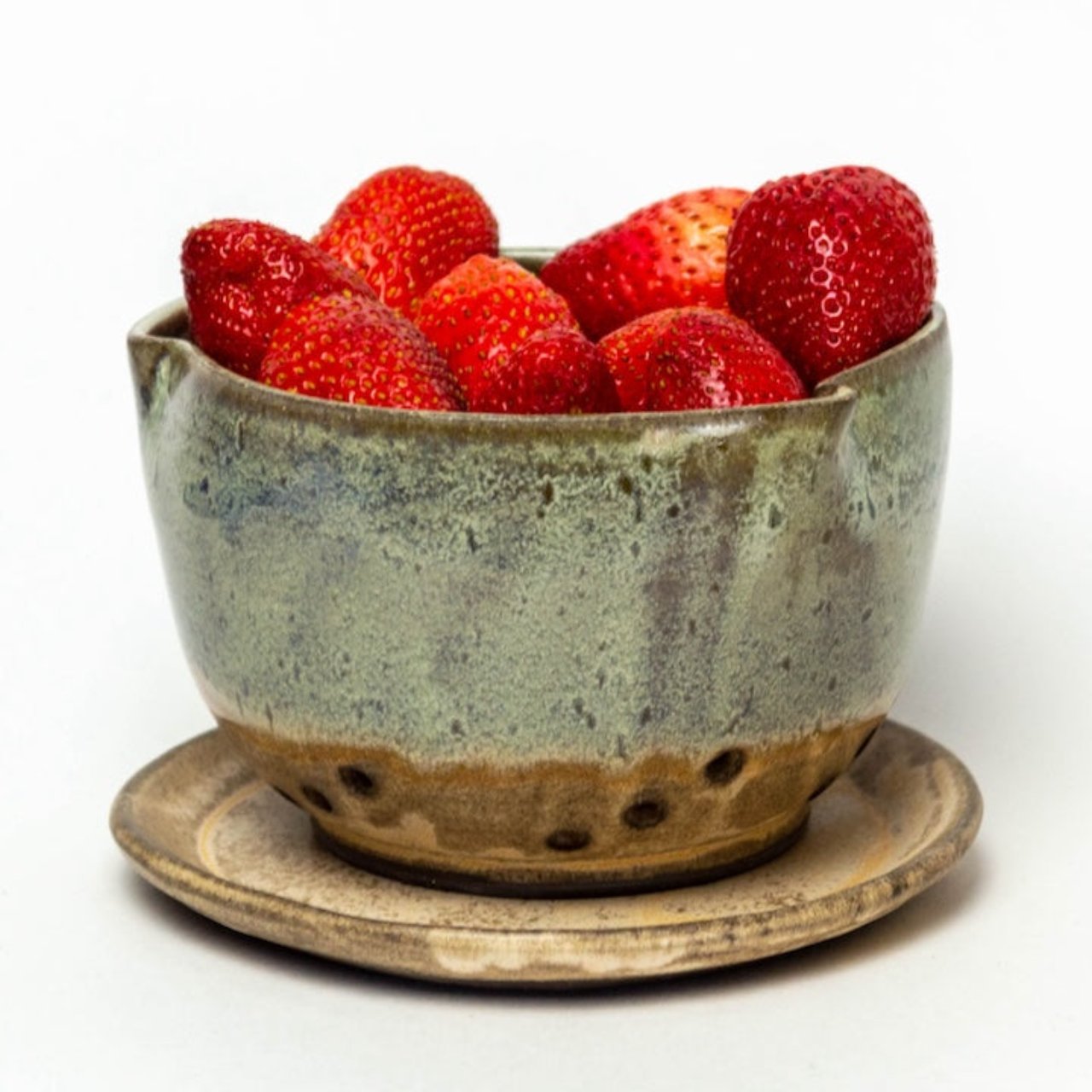 Add a touch of artisanal beauty to your kitchen or home with this hand-thrown chocolate clay stoneware berry bowl. Lovingly crafted and hand-glazed in Ohio, USA, each piece is one-of-a-kind, featuring unique drain hole designs and subtle variations in both color and texture that make every bowl truly special. No two pieces are exactly alike, adding a personal and unique element to your space. Measuring approximately 3.5 inches high and 5 inches wide, it comes with a matching 5.5-inch saucer, perfect for catching excess water. Whether you’re rinsing fresh berries, draining pasta, or displaying an orchid, this versatile piece is food, dishwasher, and microwave-safe for everyday convenience.