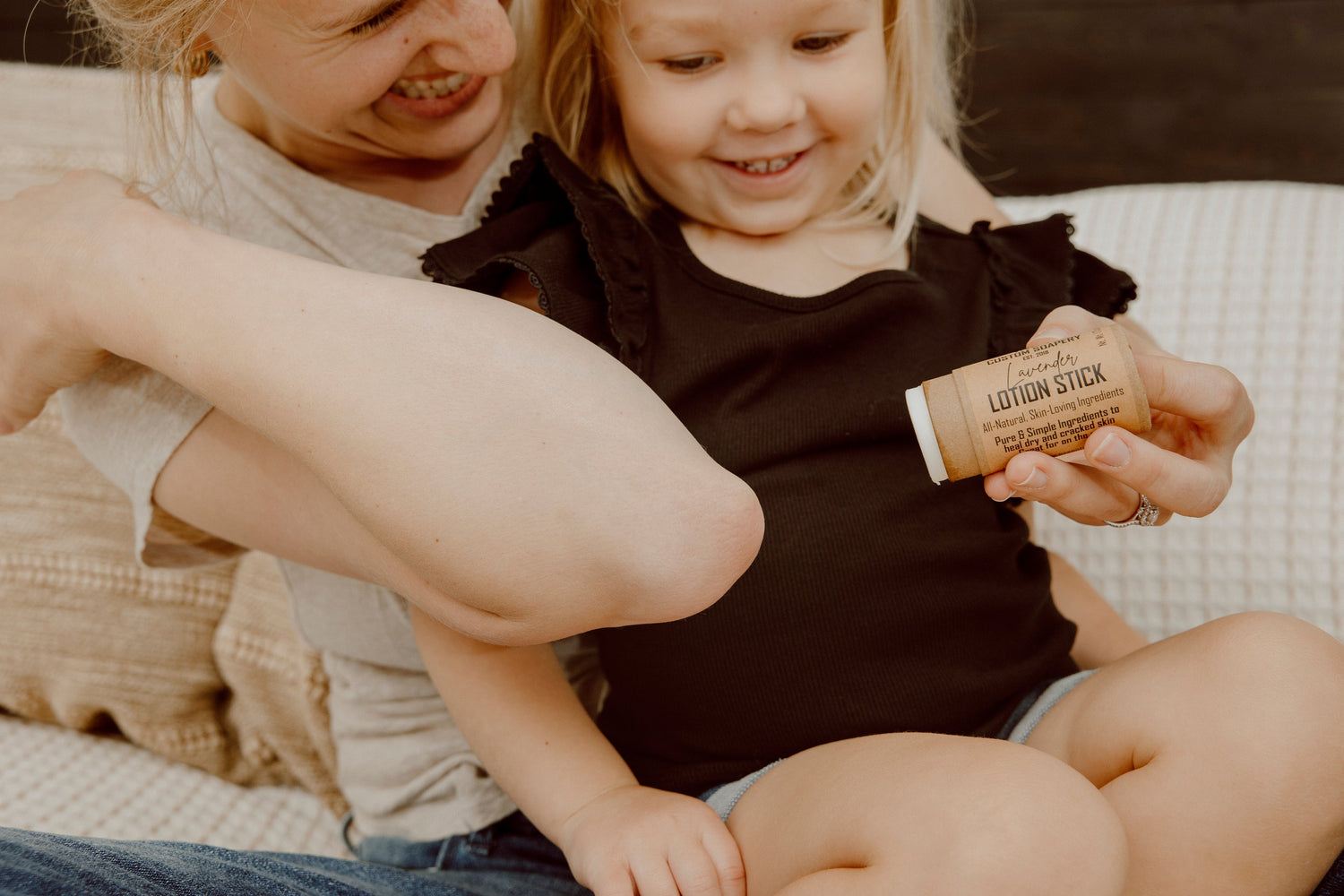 Our lotion sticks are made with a slightly higher concentration of coconut oil to glide on smoothly. Great for applying easily to people of all ages. Made with 3 simple ingredients: beeswax, coconut oil, and shea butter. Our lotion sticks are also packaged using the same biodegradable packaging as our other products. We believe having great skin doesn’t have to compromise the environment.