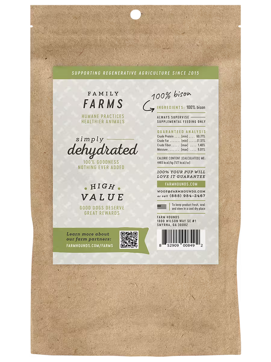 Transparently sourced from 100% pasture-raised bison, these high-protein trainers are perfect for every dog and any occasion!