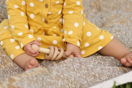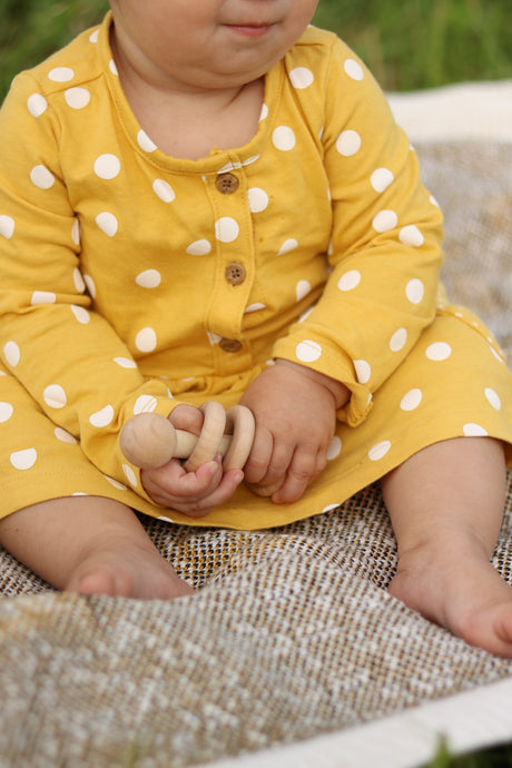 Amish-Made Wooden 3-Ring Baby Rattle Toy - Unfinished Wood - 3-4" Long