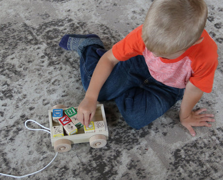 Amish-Made Wooden ABC Block Toddler Pull-String Wagon Toy
