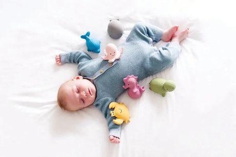 Natural Organic Rubber Teether, Rattle & Bath Toy - Octopus