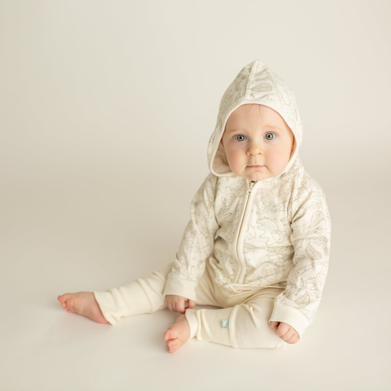 Giraffes and hippos and monkeys, oh my! This adorable zip-up organic baby hoodie goes with everything and is perfect for layering. It's one of our favorite new items, and we think you'll agree.