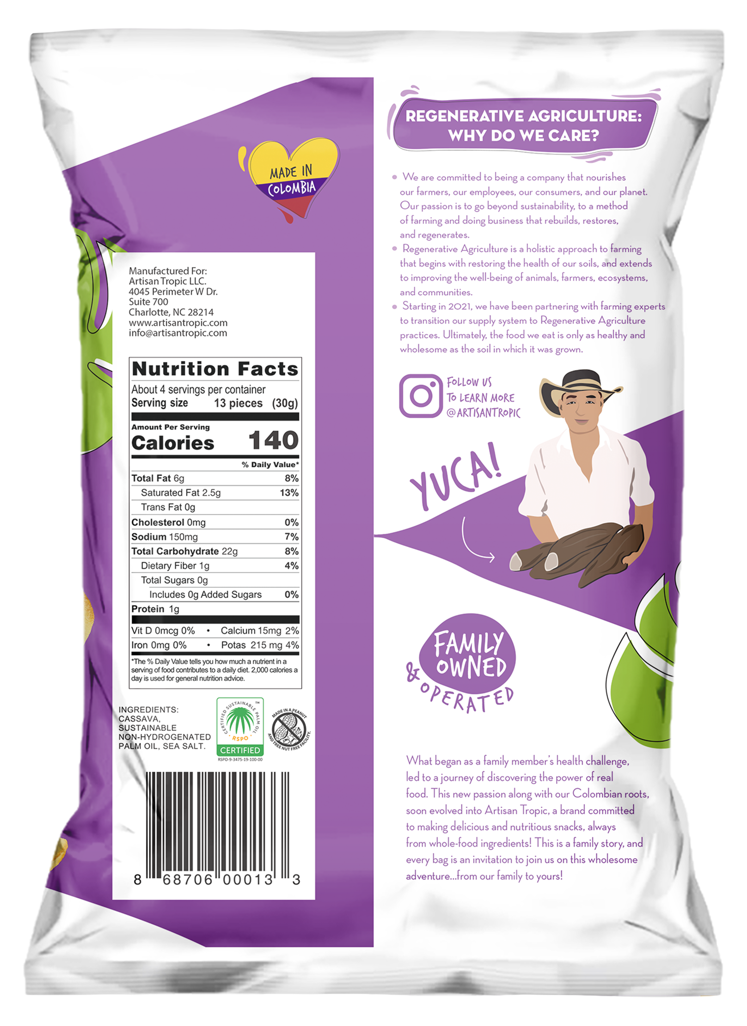 Our 4.5 oz Sea Salt Cassava Strips are perfect for sharing with your family and friends on every occasion! Unlike cassava flour tortilla chips, which require much more processing, we simply harvest, cut into strips, roast and season. Enjoy the delicious crunch and texture without sacrificing quality and wholesome ingredients!