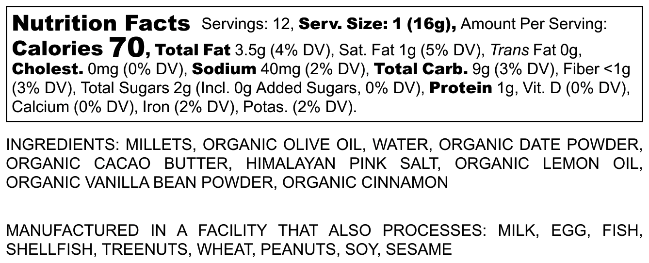 Made with nutrient-rich millets, a naturally gluten-free ancient grain that’s gentle on you and kind to the planet—requiring less water and fewer pesticides than many other crops.