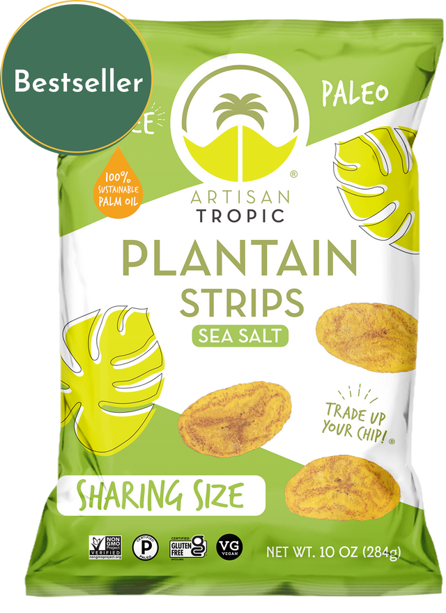 Our 10 oz Sea Salt Plantain Strips are perfect for parties, large gatherings and all family events! Unlike many other chips out there, you can easily dip our Plantain Strips into your favorite sauce or get creative and use them in recipes. Trade Up Your Chip!