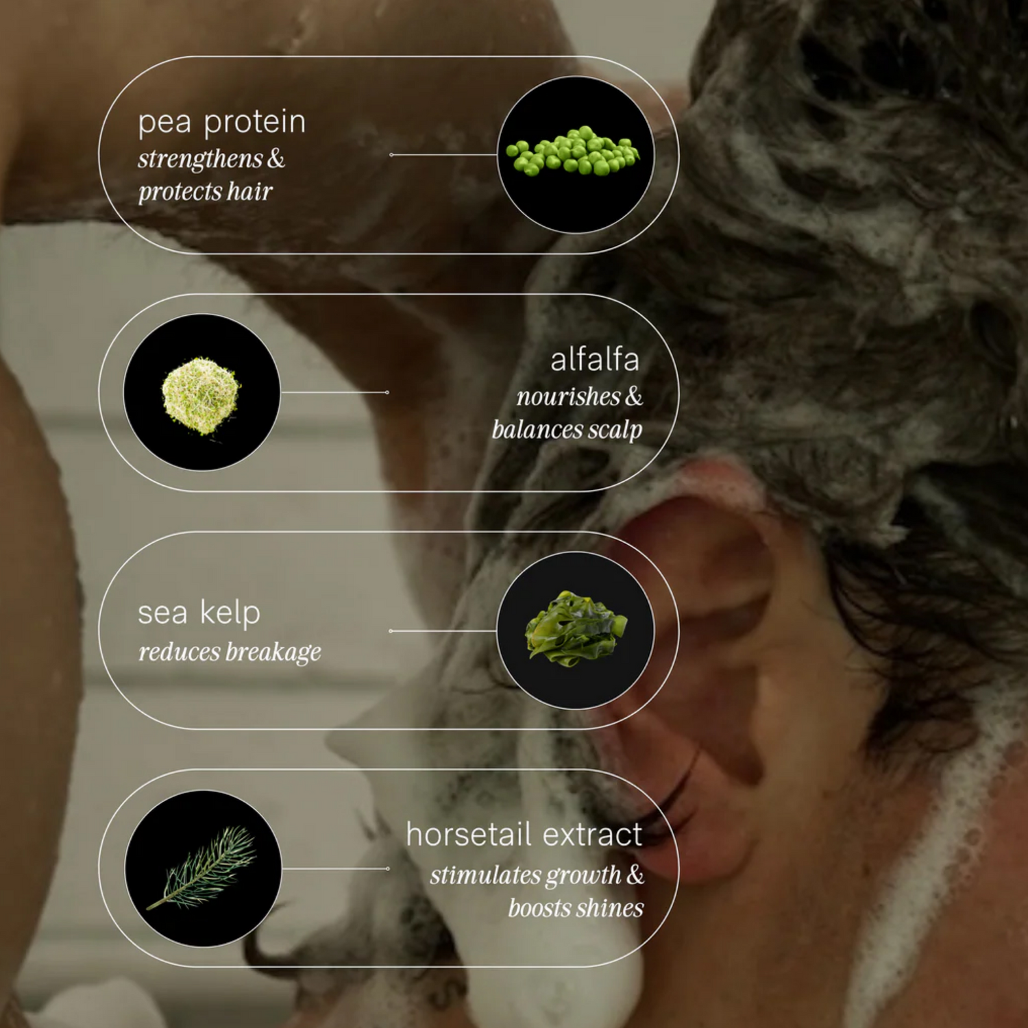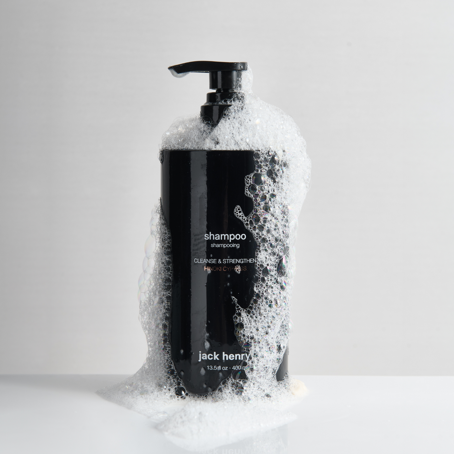 Our creamy shampoo offers a gentle yet effective cleanse, restoring your hair's natural pH balance. Enriched with peptides and powerful functional extracts, this formula not only adds volume but also shields your hair from environmental pollutants while providing deep nourishment. Designed for all hair types, our keratin- and vitamin-infused blend is fragranced with 100% natural, botanically derived scents. 400ml / 13.5 ounces