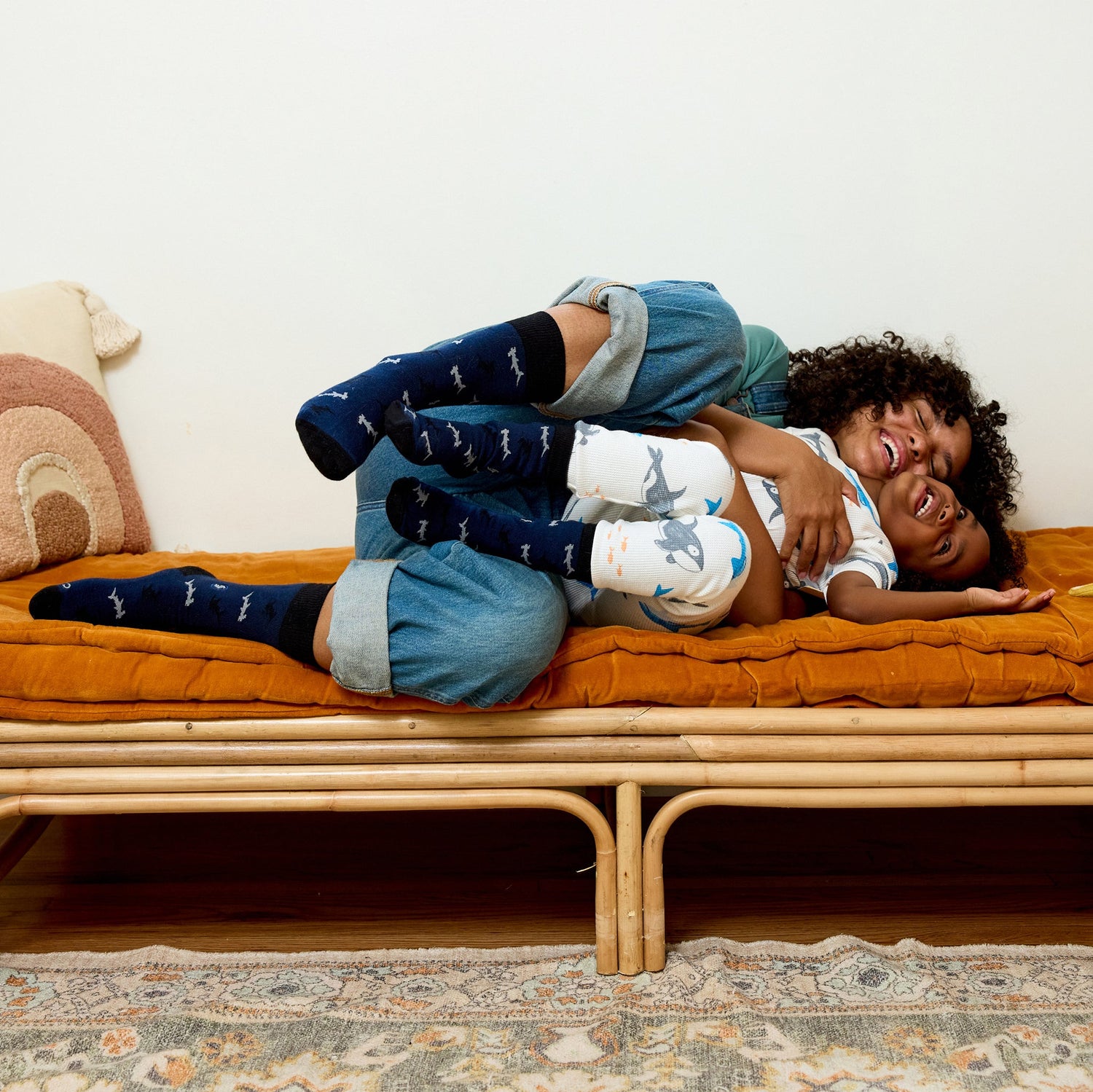 If Finding Nemo taught us one thing, it’s that sharks are our friends. Let them show off their love of sharks and other ocean creatures with this comfy navy pair.