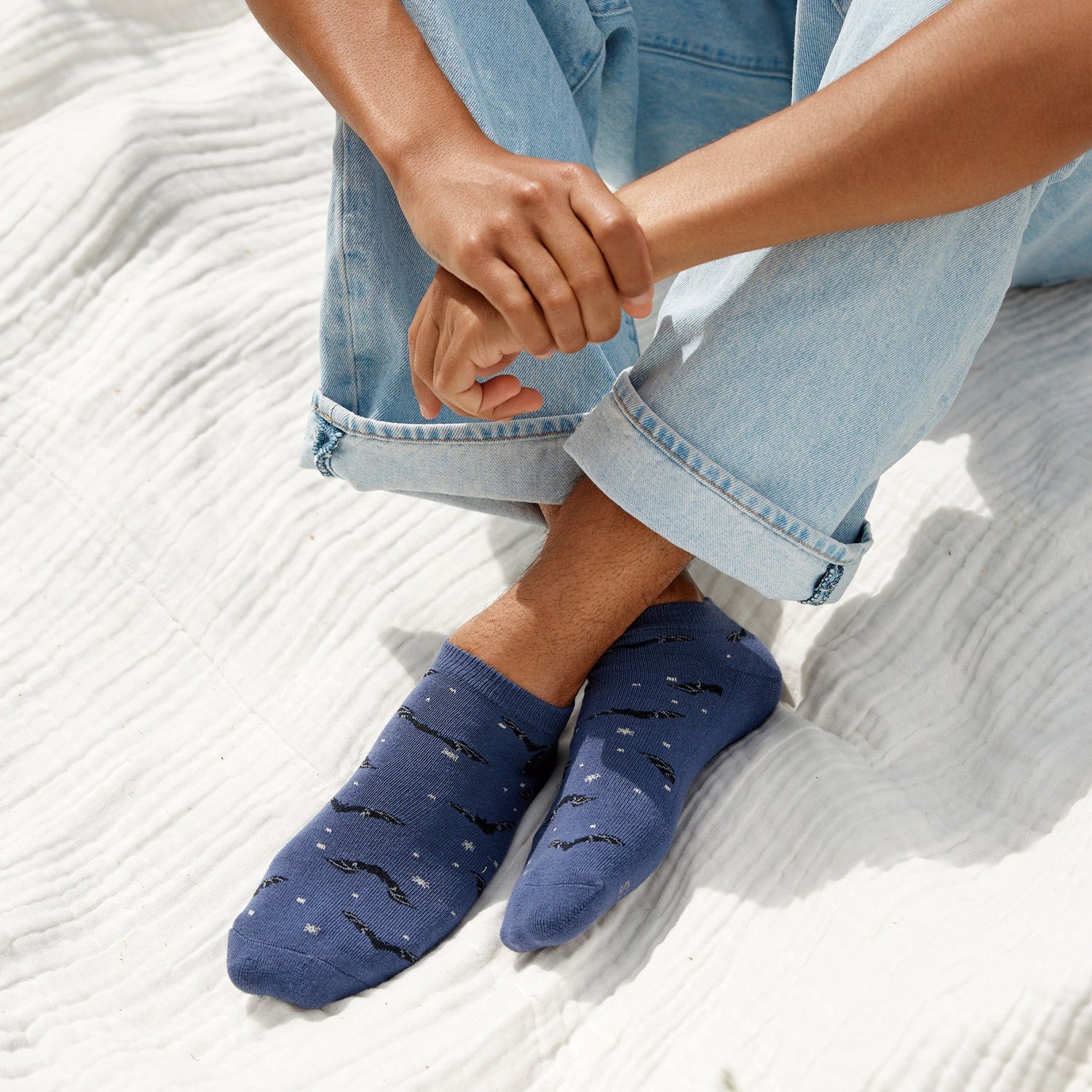 Take flight day or night with these midnight blue, bat ankle socks! Perfect for night owls and lovers of all things spooky, this pair is equal parts cozy and cool.