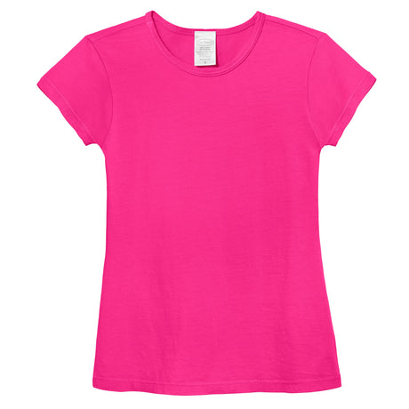 Girls Soft Organic Cotton Jersey Cap Sleeve Crew Tee | Hot Pink