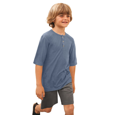 Boys Soft Organic Cotton Jersey Short Sleeve Henley Tee | ELF