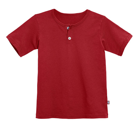 Boys Soft Organic Cotton Jersey Short Sleeve Henley Tee | Red