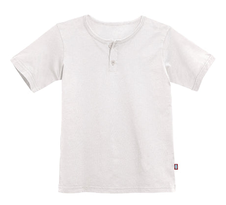 Boys Soft Organic Cotton Jersey Short Sleeve Henley Tee | White