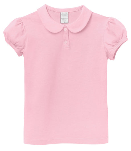 Girls Soft Cotton Jersey Peter Pan Collar Polo Puff Short Sleeve Tee-Seconds | Damage Uniform Red