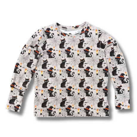 Bamboo Long Sleeve Crew Neck Tee in Purrfectly Spooky