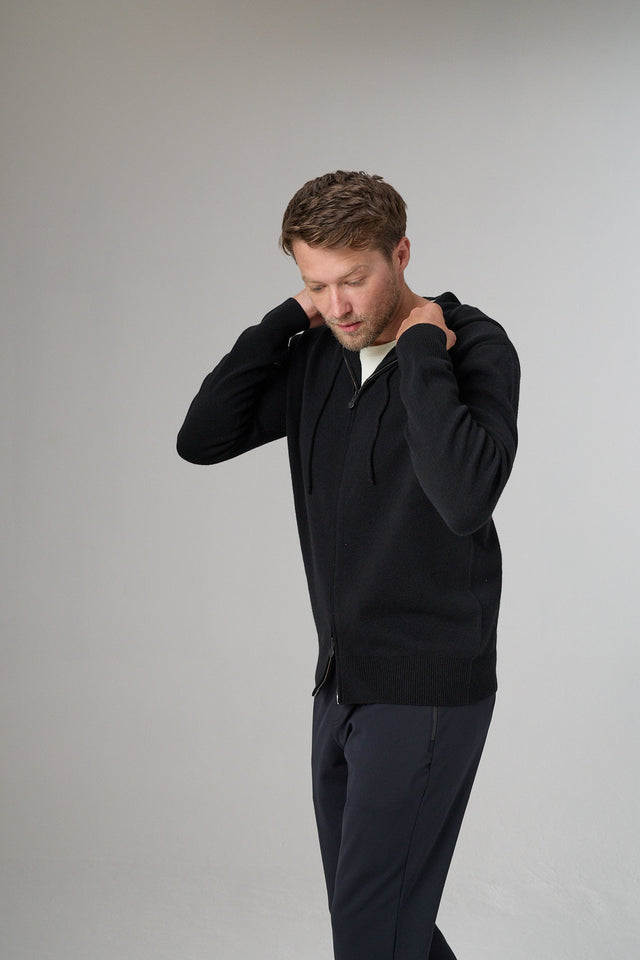 The BELLAGIO sweater is your solution layer for elevating a tee or relaxing a button-down. Made from ultra-soft cashmere blended yarn, it’s durable yet luxuriously cozy. Sleek dual zippers and our signature logo add a refined touch. Perfect for cool nights or borrowing as a "boyfriend" sweater.