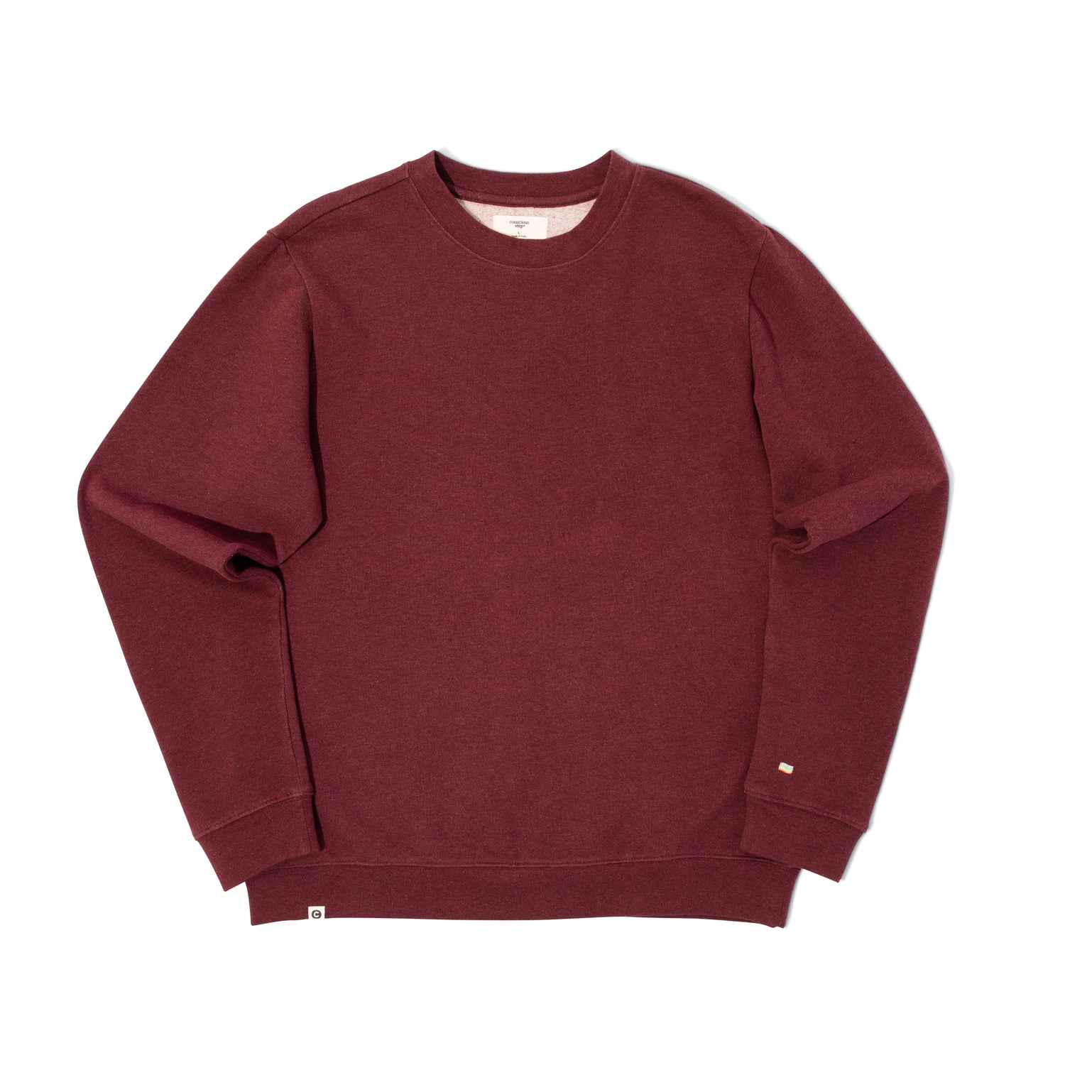 Love is love is love, in a sweatshirt! Our organic cotton maroon crewneck features a rainbow flag embroidery, because we like wearing our hearts on our sleeves.