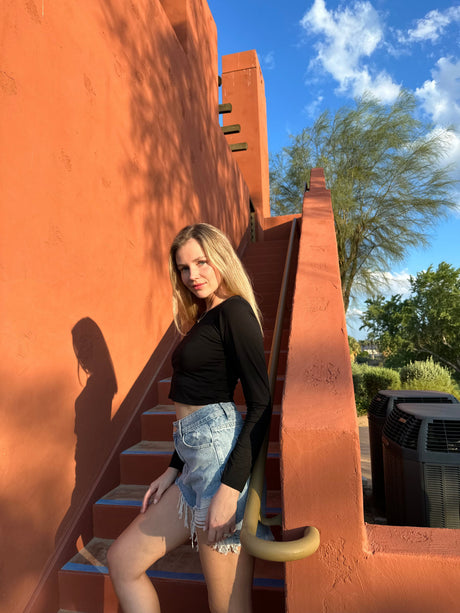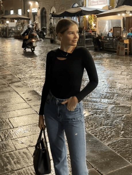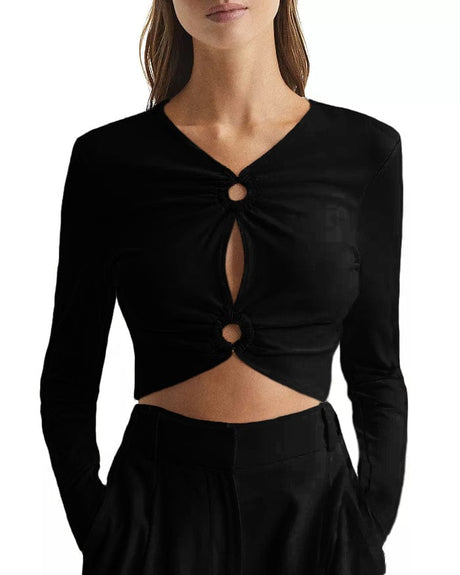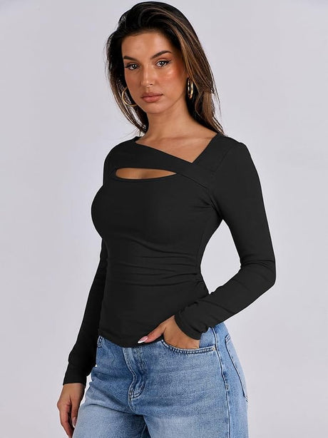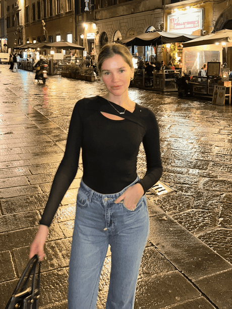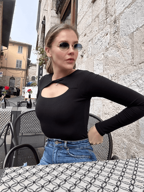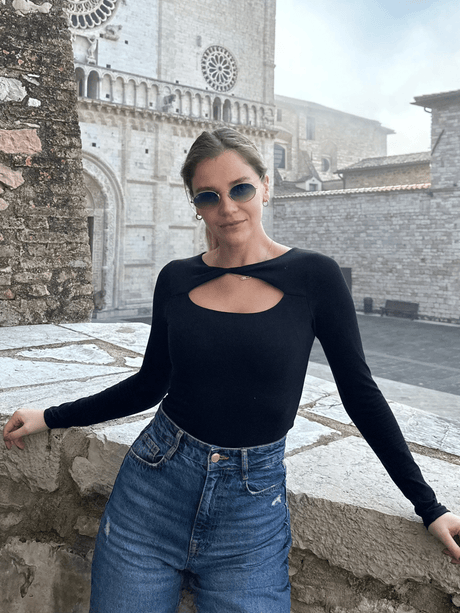 Whitney Cotton Long Sleeve Cutout Twist Bodysuit