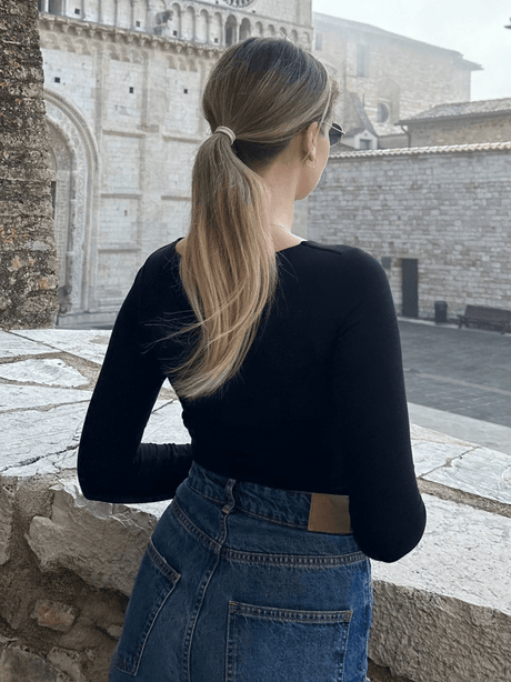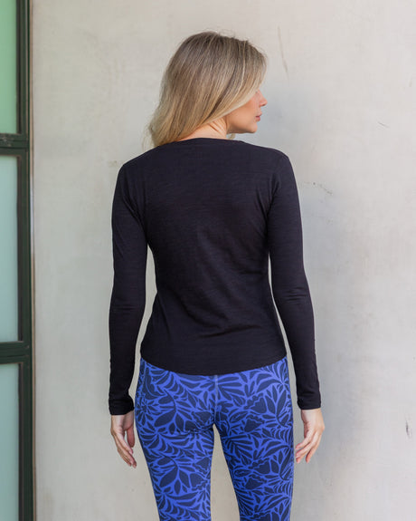 Hailey Mesh and Cotton Long Sleeve Top - Nero
