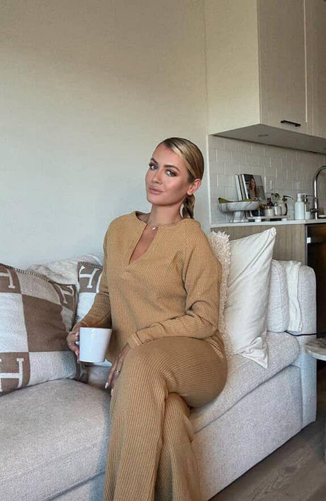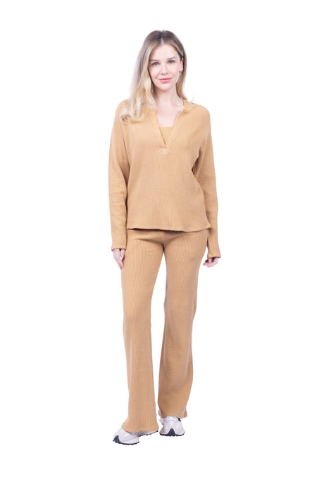 Jules Waffle Knit Organic Cotton V-Neck Pullover