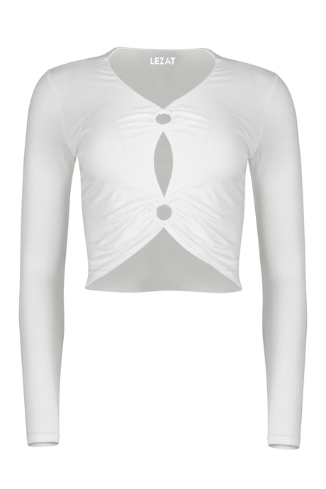Hailey Mesh and Cotton Long Sleeve Top - Blanc