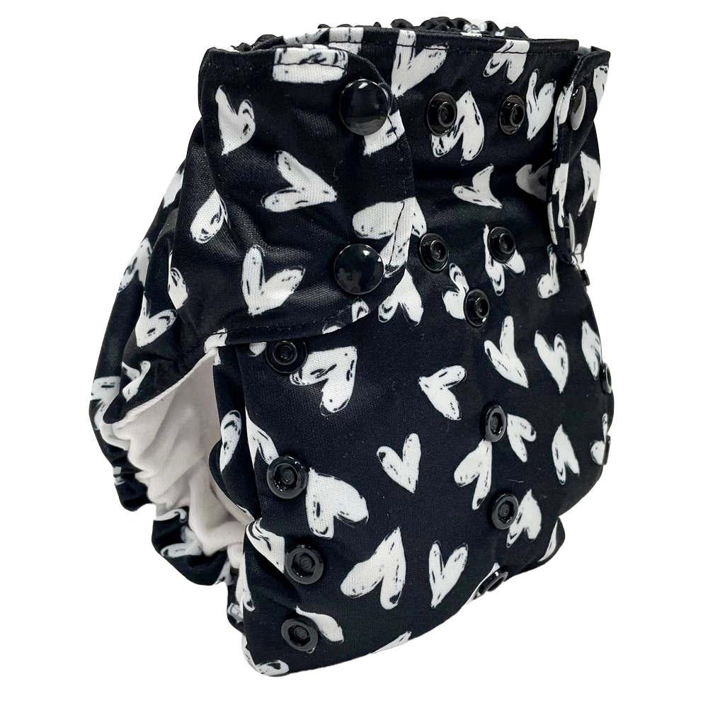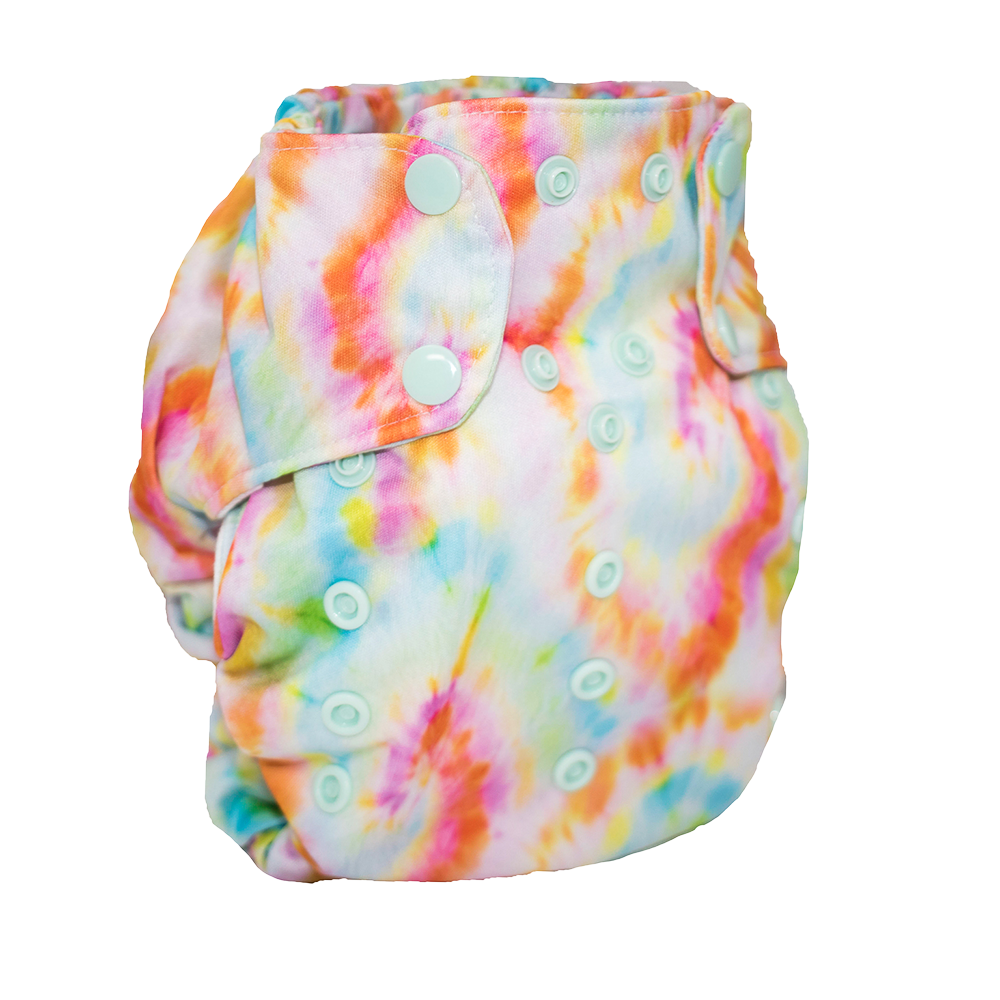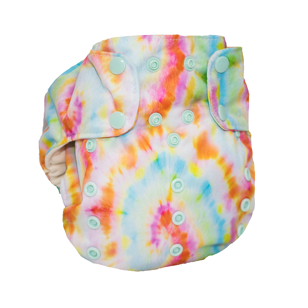 Smart Bottoms' Organic, One Size, All-in-One cloth diaper fits most babies 10-35 lbs. This uniquely designed cloth diaper offers superior absorbency without additional bulk. The attached insert can be folded to customize where your child needs the most absorbency.
