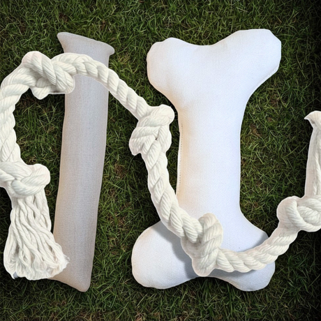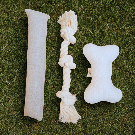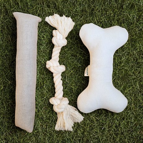 Natural Dog Toy Bundle for Cuddles, Fetch and Tugging - Small to Large Dogs Options