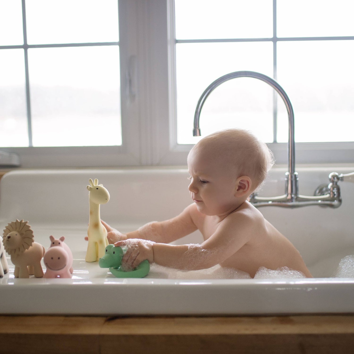- Made from all-natural organic rubber, this long-necked love from our My First Safari Collection is easy for tiny hands to grip. And when shaken it responds with a gentle sound that is sure to comfort your little ones.