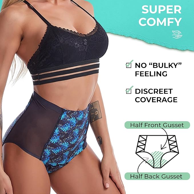 Sitting above the waist with mesh sides, High Luxe is a blend of soft shapewear and sexy full-bum coverage. Perfect under everything, especially skirts and pants when you need that added confidence a full brief provides. Medium Absorbency.